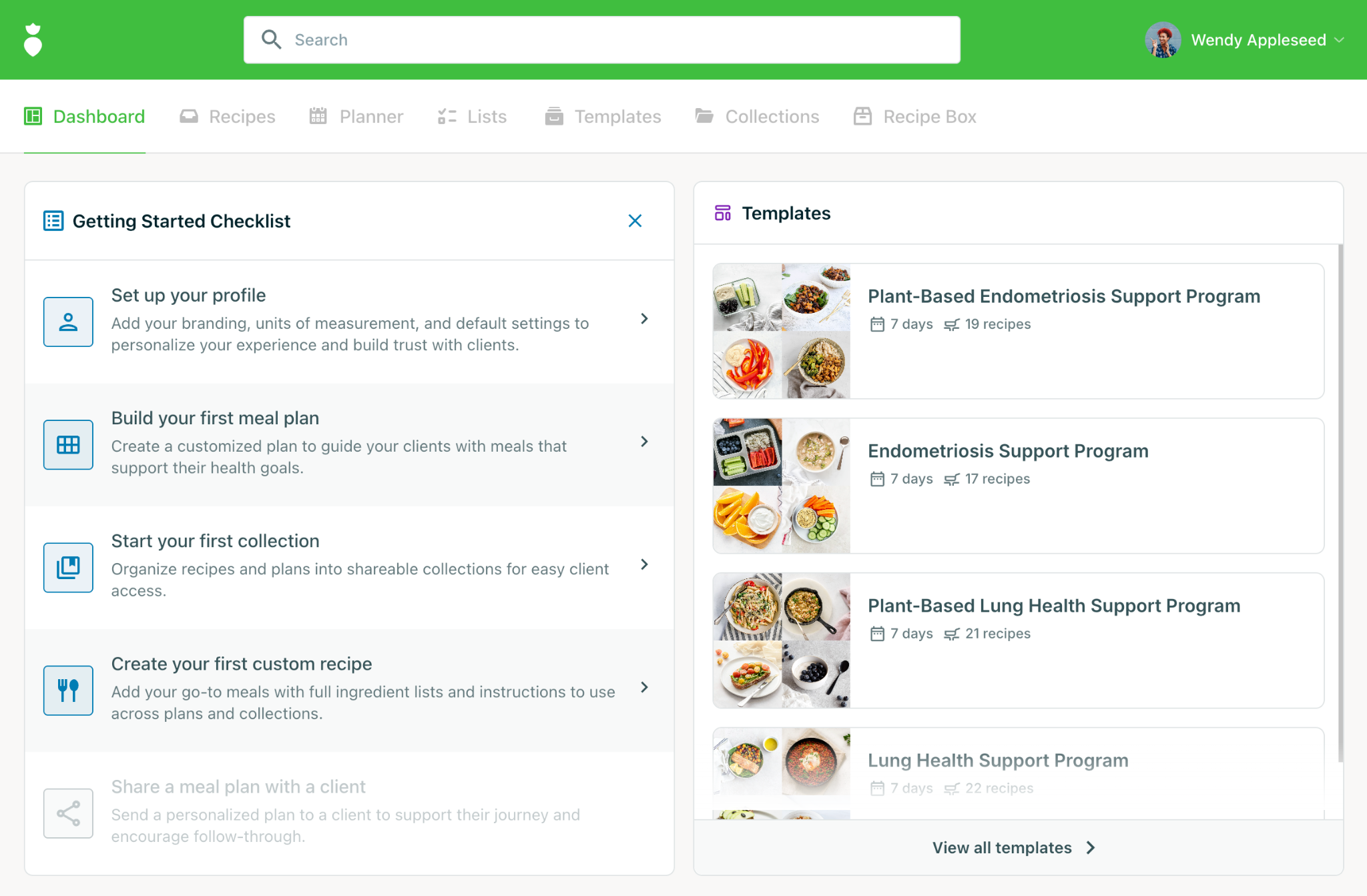 When you first log in to That Clean Life, your Dashboard will display the Getting Started Checklist — a quick guided path designed to help you get oriented and start delivering nutrition plans to your clients with confidence.