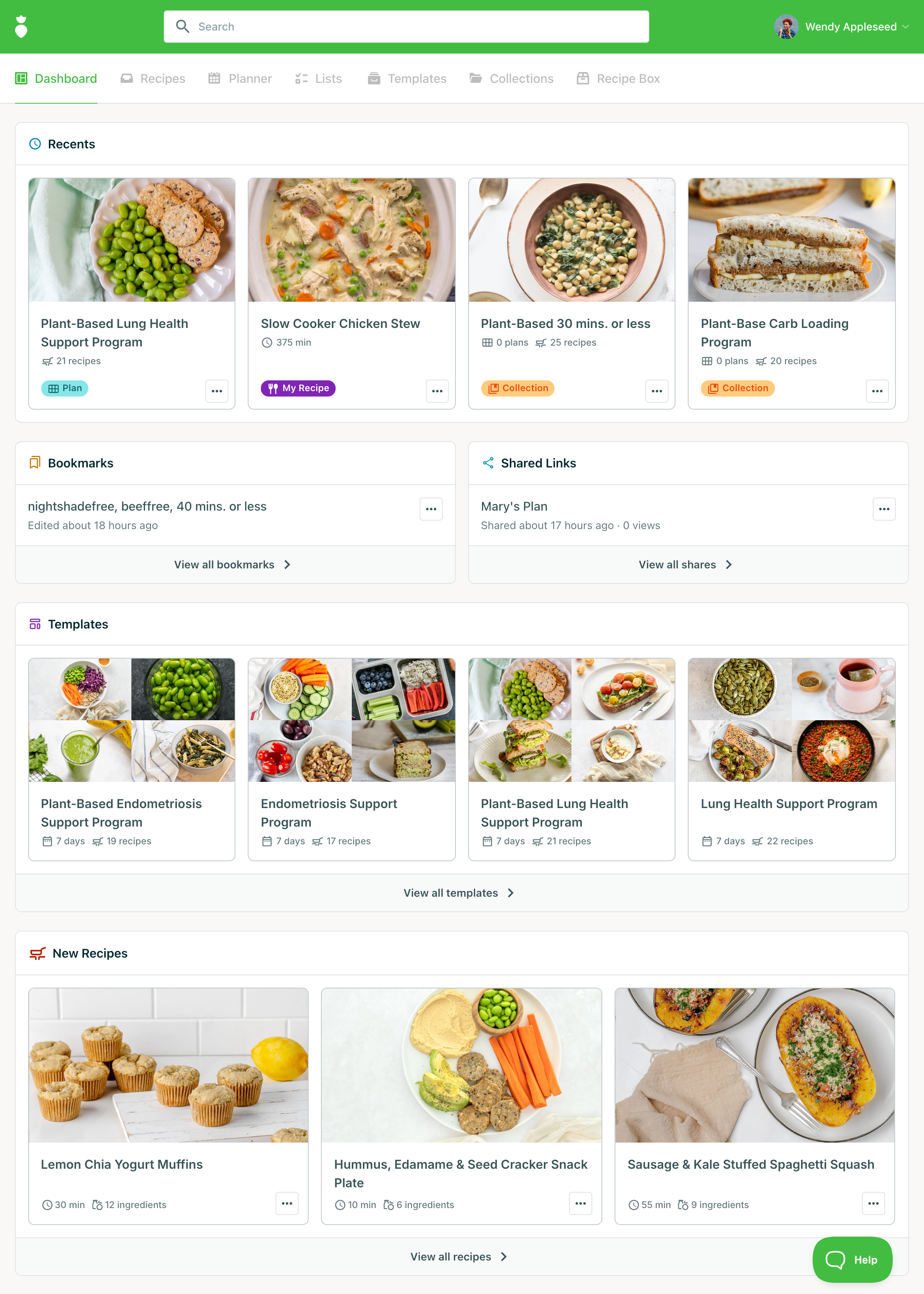 - Recents: A running view of the plans, recipes, and collections you've been working on most recently. Think of it as a shortcut back to whatever you had on the go.