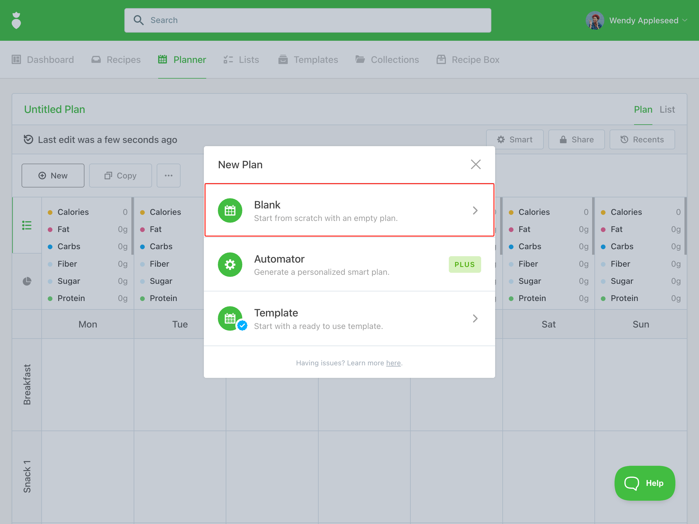 A blank planner gives you full control to hand-select every recipe. This is ideal when you want to build a plan from scratch around a specific client's needs.