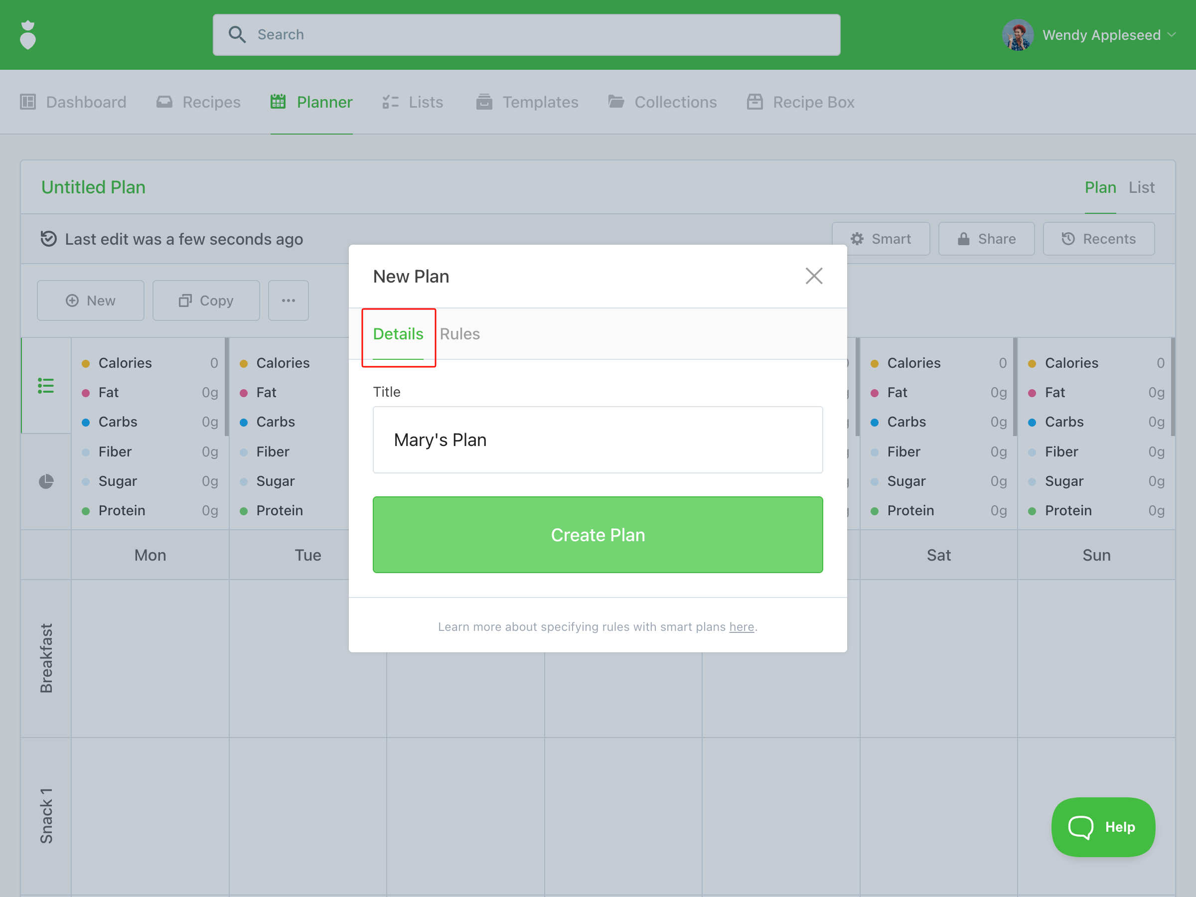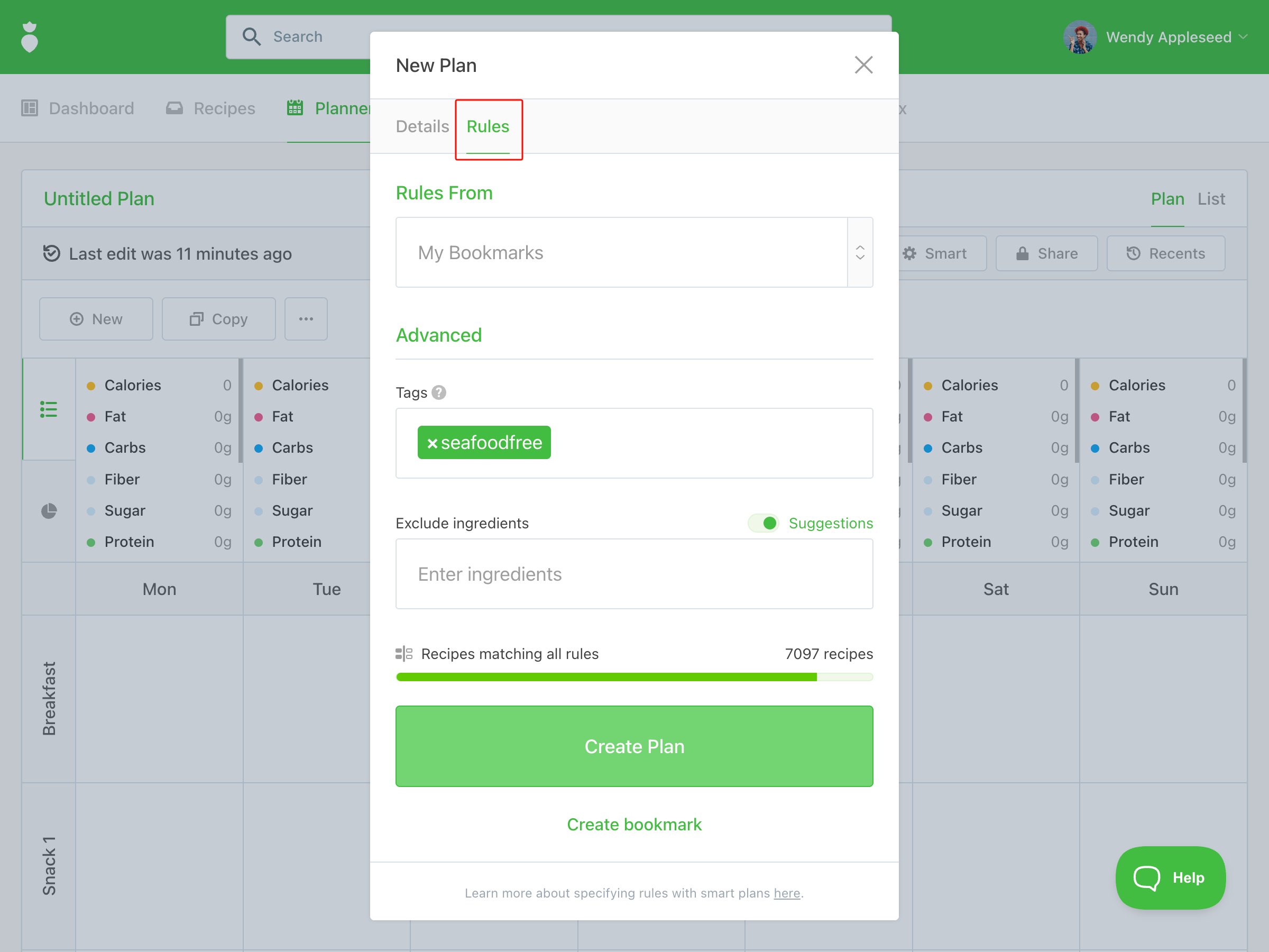 - Name your meal plan and set your rules.