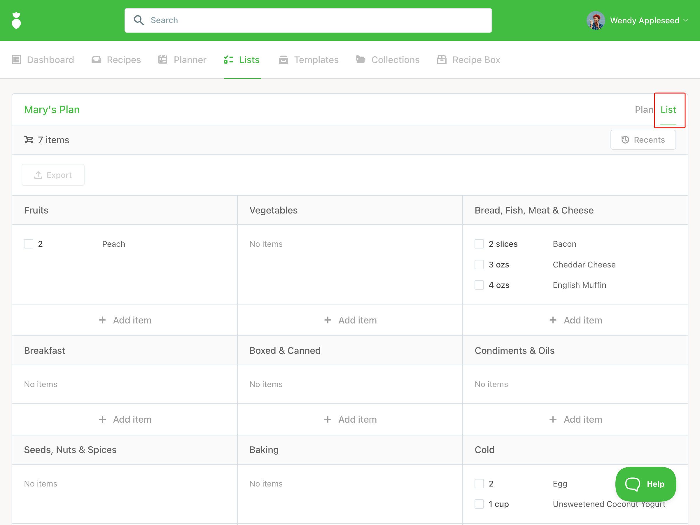 The grocery list updates in real time as you make changes.