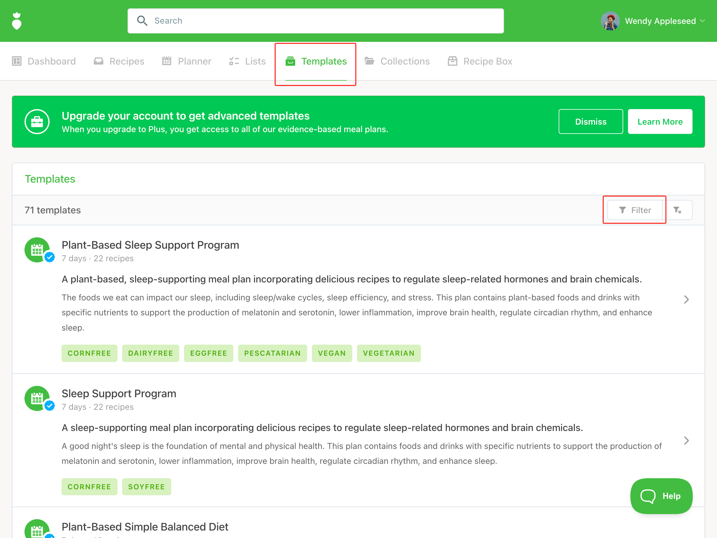 Templates are done-for-you meal plans created by the That Clean Life team, complete with a grocery list, prep guide, and evidence-based rationale. They're a great starting point when you want to move quickly or need a clinically grounded foundation to build from.