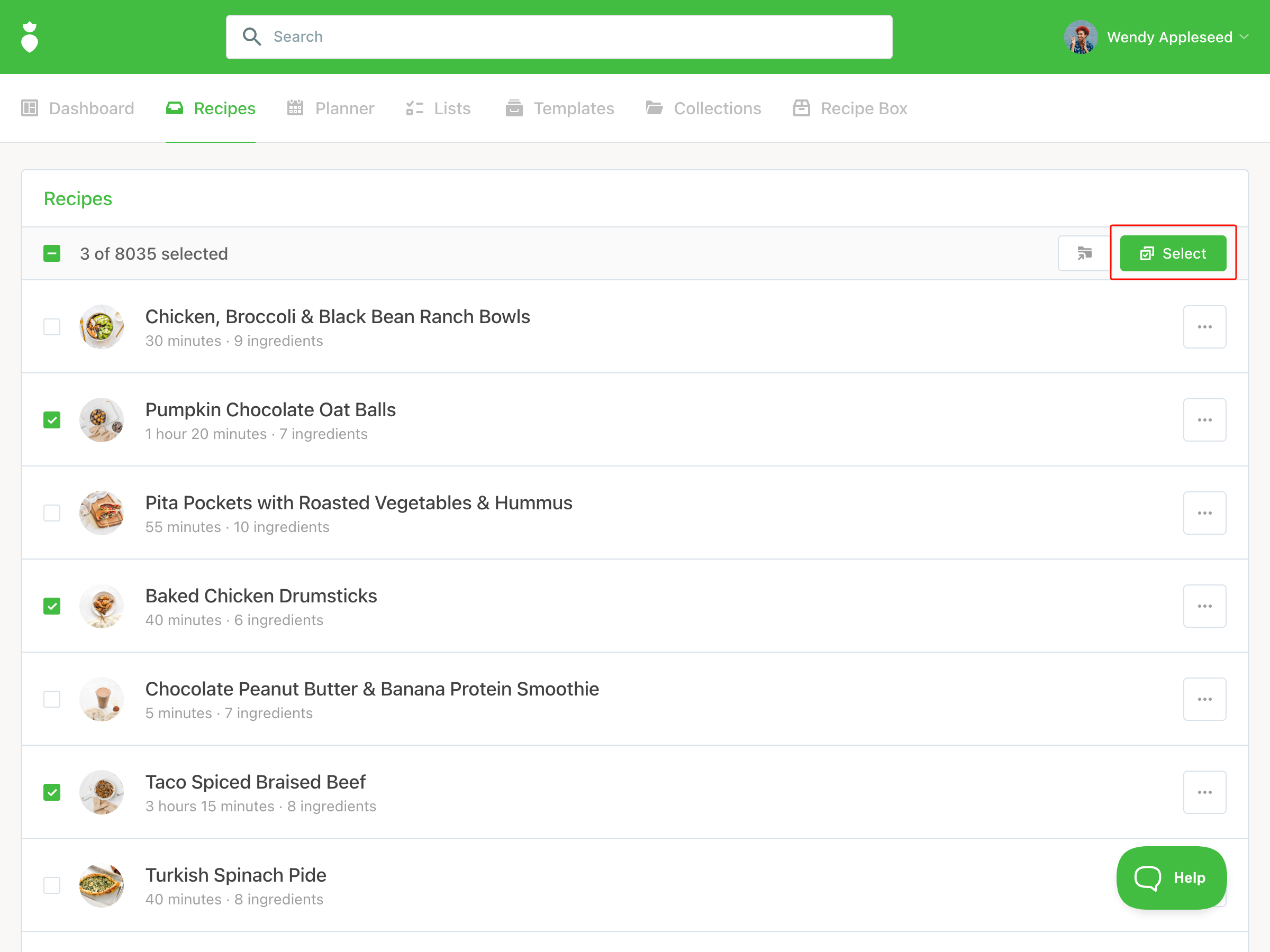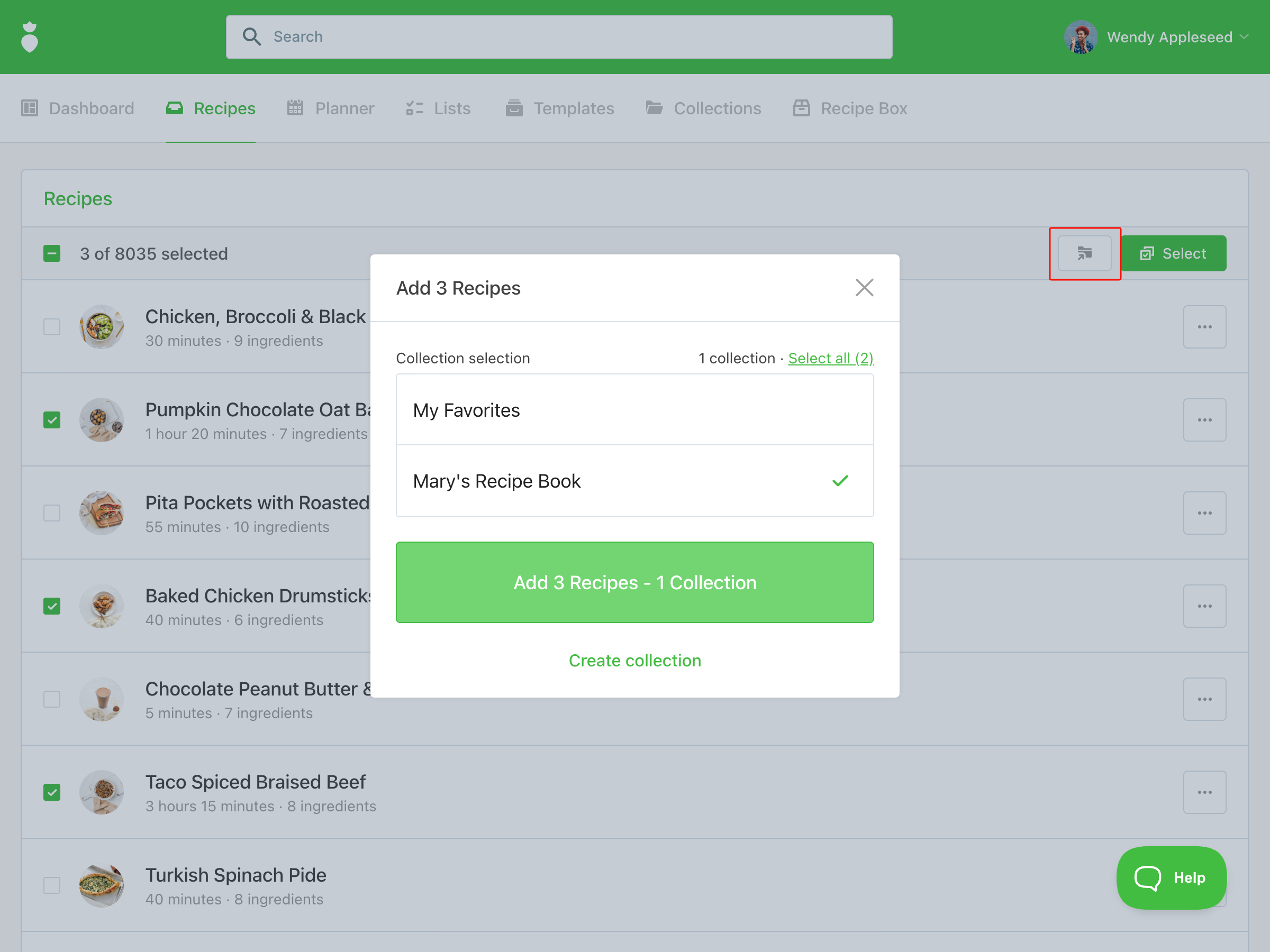 To add multiple recipes at once, click Select, check the recipes you want, and add them to your collection in one step.