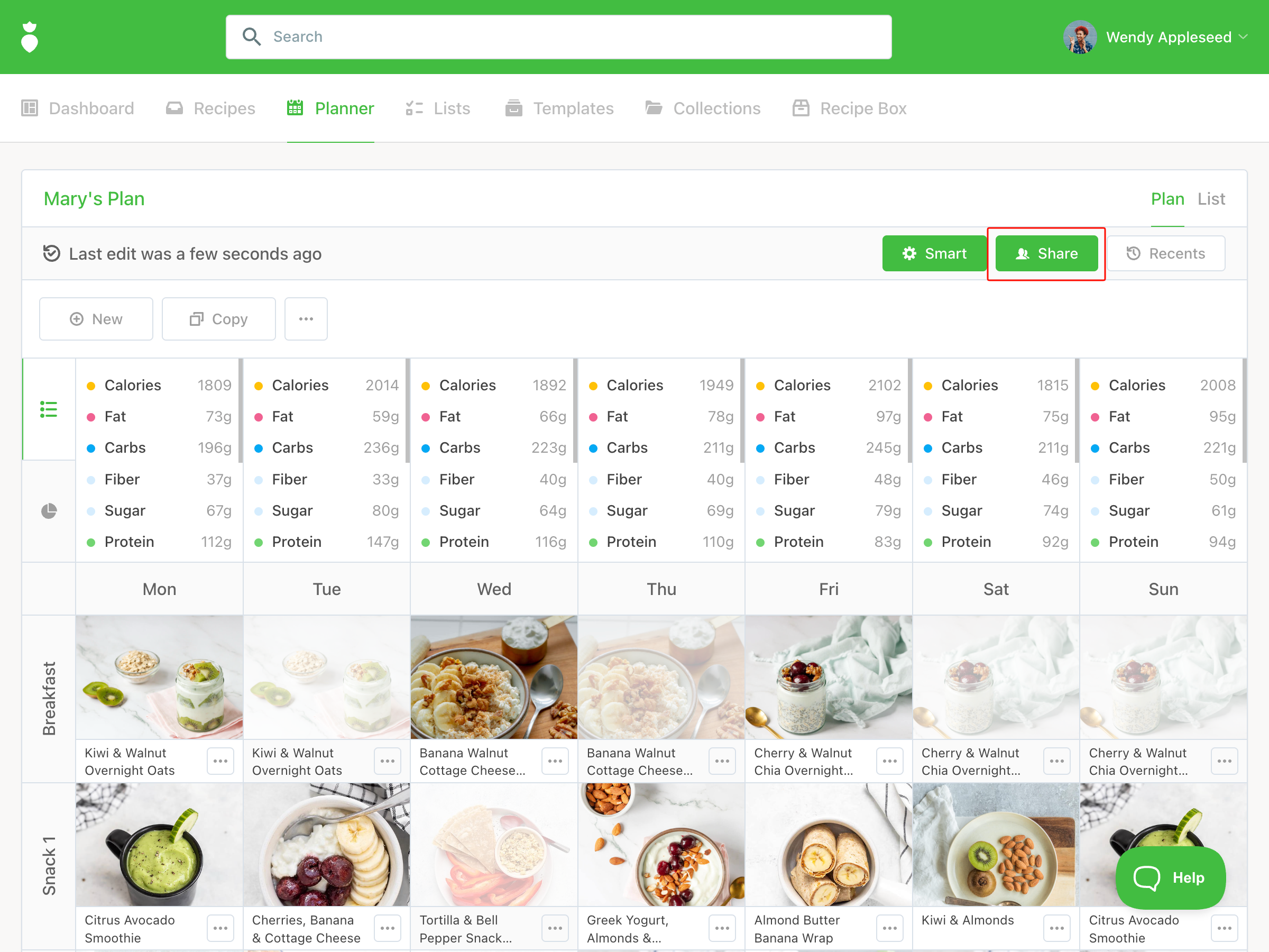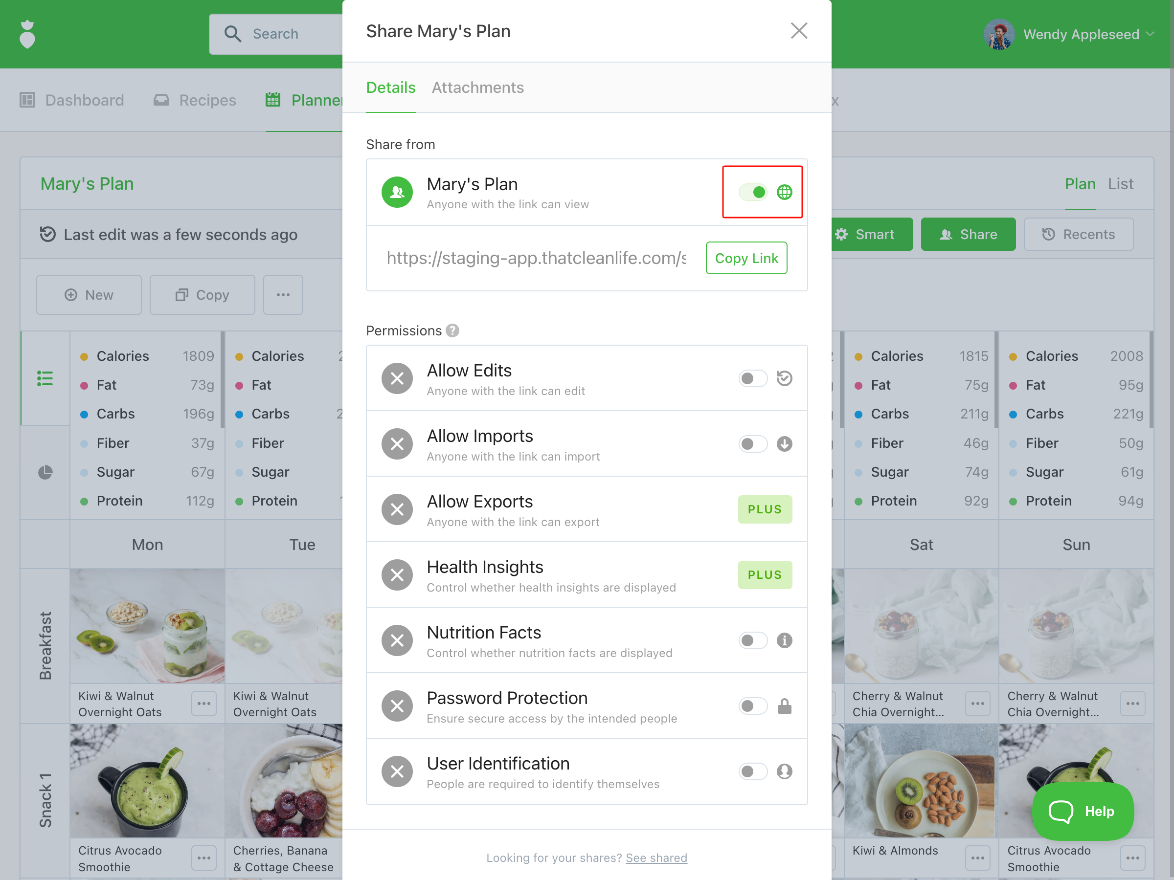 - Open the meal plan or collection you'd like to share.